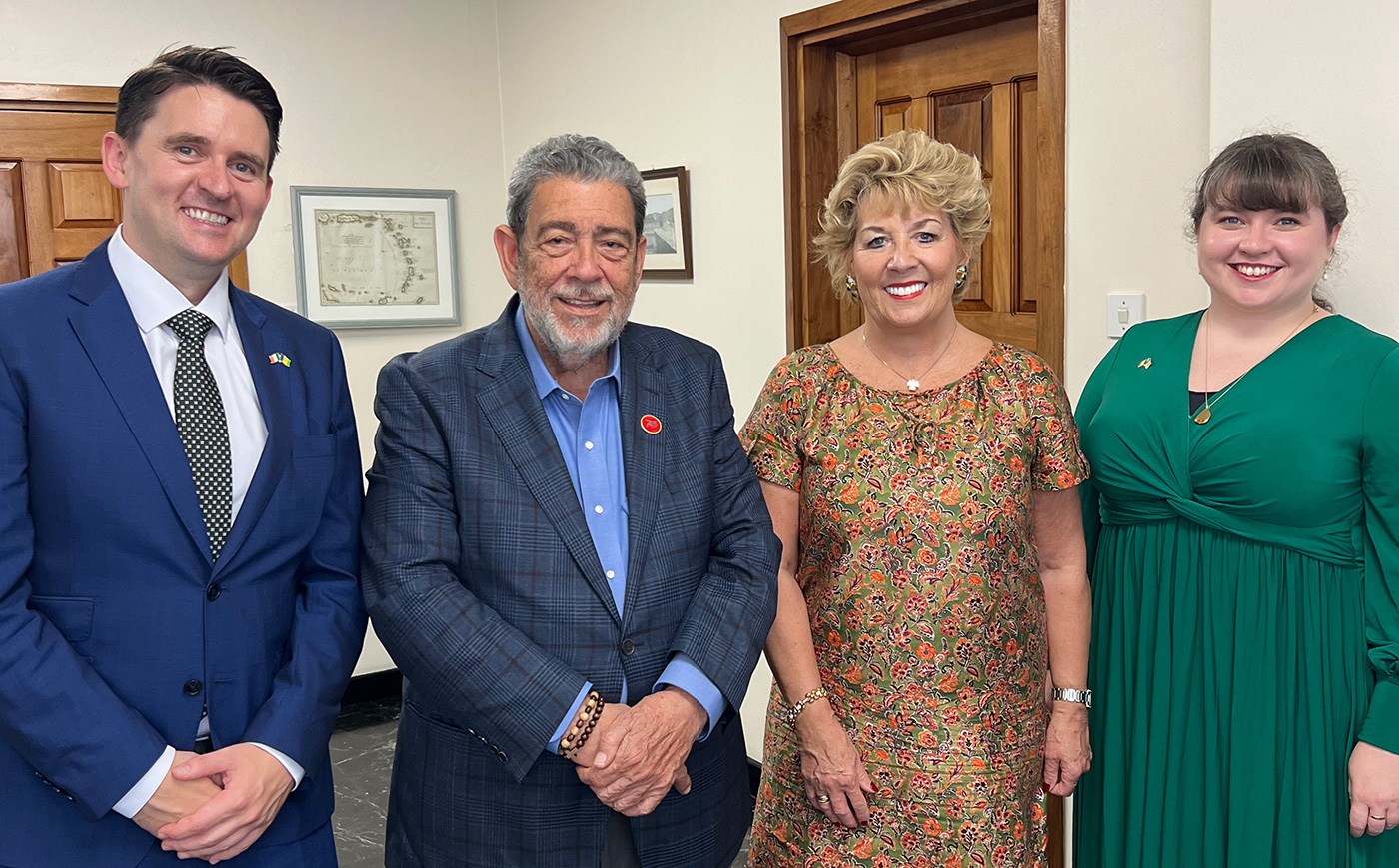 During her official visit, Ambassador Byrne Nason held courtesy meetings with Dr. the Honourable Ralph E. Gonsalves, Prime Minister of Saint Vincent and the Grenadines; Honourable Dr. Godwin Friday, Leader of the Opposition; and Mr. Glen Beache, Chief Executive Officer of Invest SVG.