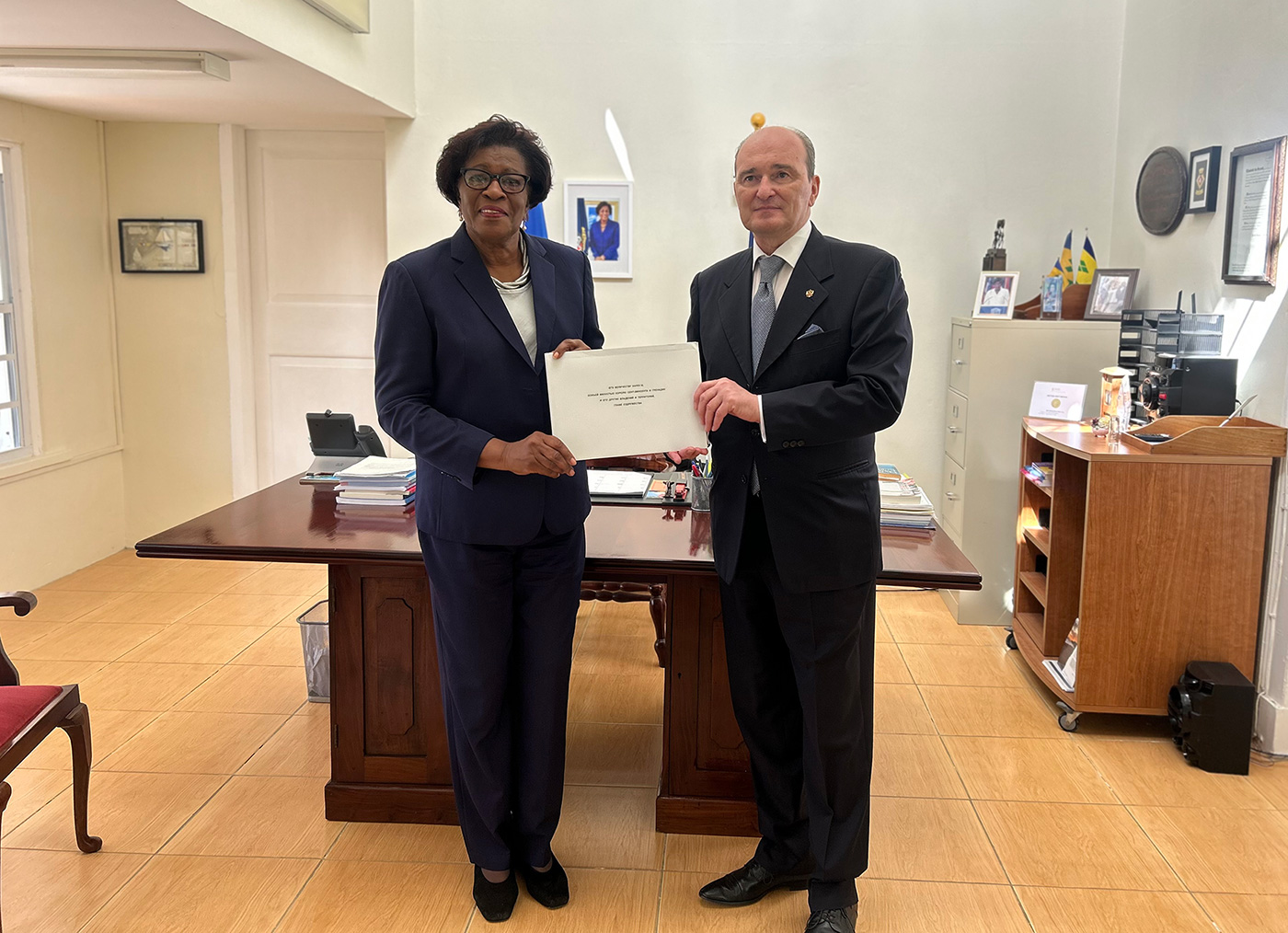 The Government of Saint Vincent and the Grenadines formally welcomed the Ambassador of the Russian Federation, His Excellency Andrey A. Pritsepov, following the presentation of his Letters of Credence to Her Excellency Dame Susan Dougan, Governor-General of Saint Vincent and the Grenadines. The ceremony was held at Government House in Kingstown on Wednesday, November 12, 2025.