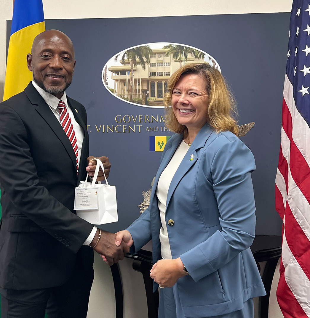 Dr. the Honourable Godwin Friday, Prime Minister of Saint Vincent and the Grenadines, and the Honourable Dwight Fitzgerald Bramble, Minister of Foreign Affairs, Foreign Trade, Foreign Investment and Diaspora Affairs, welcomed Ms. Karin Sullivan, Deputy Chief of Mission at the Embassy of the United States of America to Barbados and the Eastern Caribbean, during a courtesy call on Thursday, December 11th, 2025.
