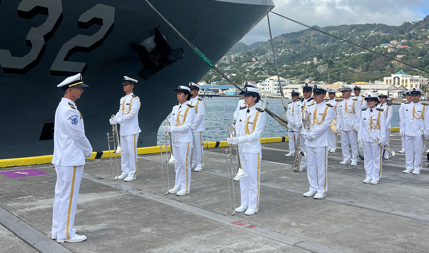 On Wednesday, April 15th, a joint honour guard ceremony featuring the Republic of China (Taiwan) Navy and the Royal Saint Vincent and the Grenadines Police Force was held at the Arnos Vale Stadium. The visit concluded on Thursday, April 16th, with a closing ceremony at the Cruise Ship Terminal.